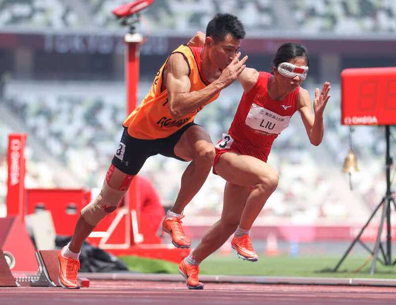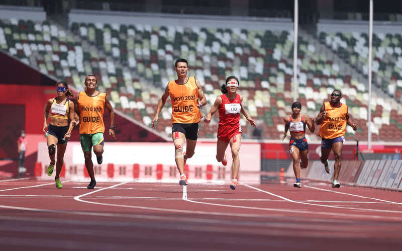 东京残奥会田径女子400米T11级决赛在28日上午进行。比赛开始前,领跑员徐冬林细心地调整了起跑器,将戴着眼罩的盲人运动员刘翠青扶到正确的位置上,然后他下蹲,熟练地将一条引跑绳套在各自的手指上。比赛开始,二人起跑顺利、配合自如,在最后100米时,已经建立了明显的优势,最终卫冕该级别。56秒25,新的残奥会纪录。