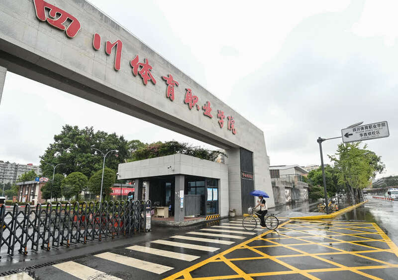 ↑耿耀志骑车来到四川体育职业学院锻炼(8月26日摄)。