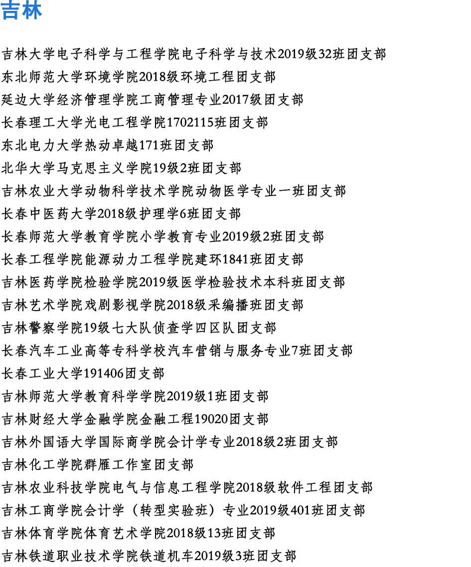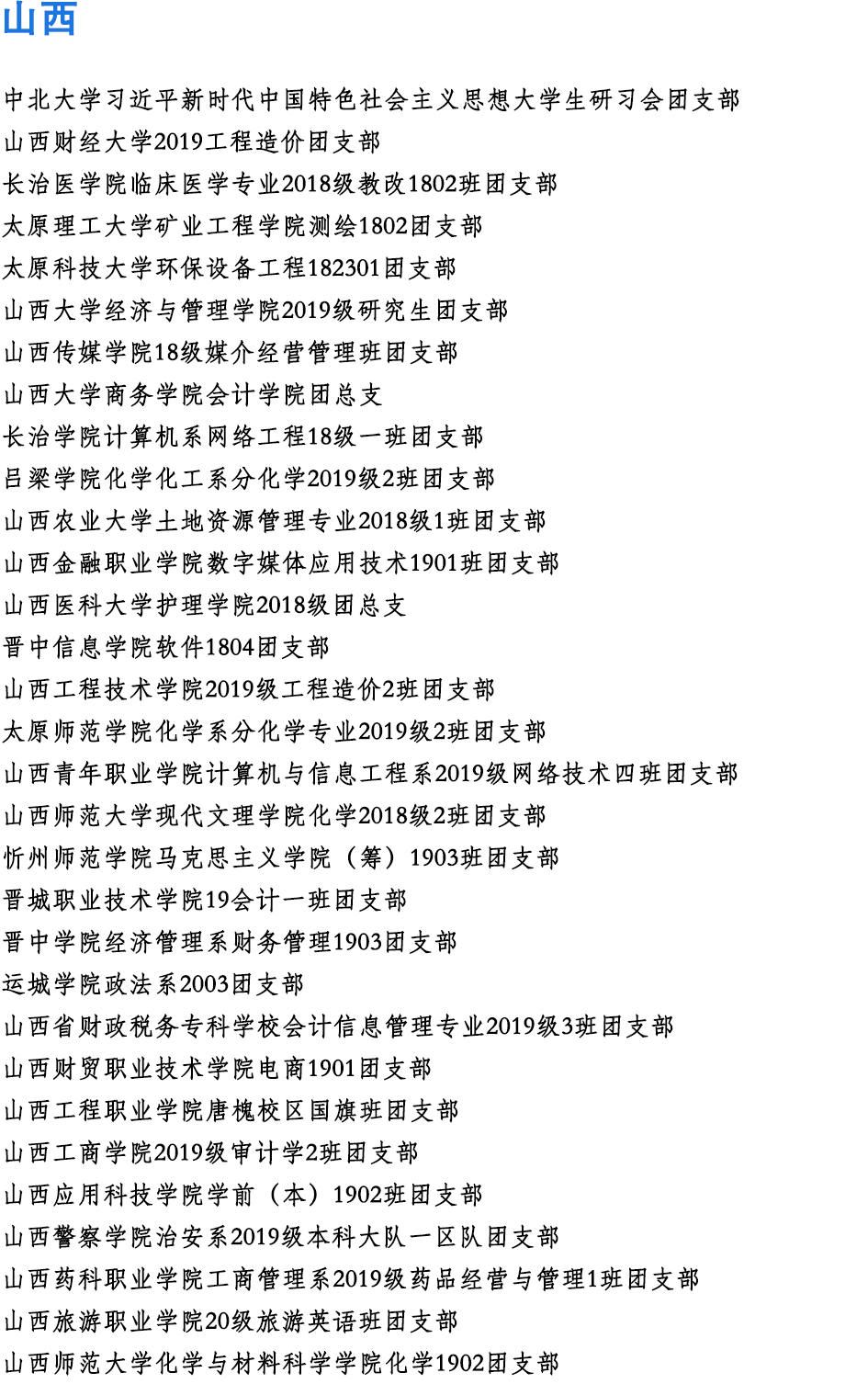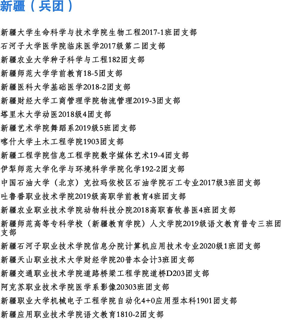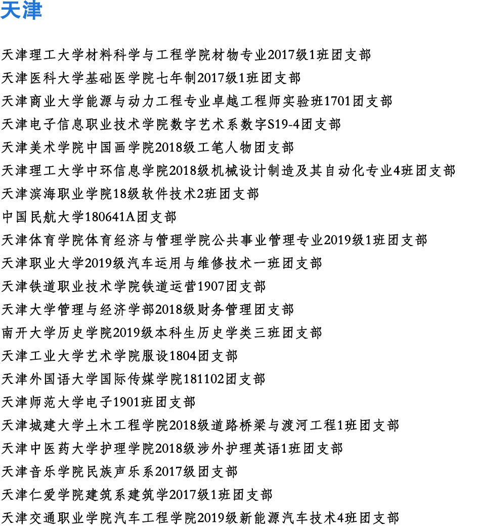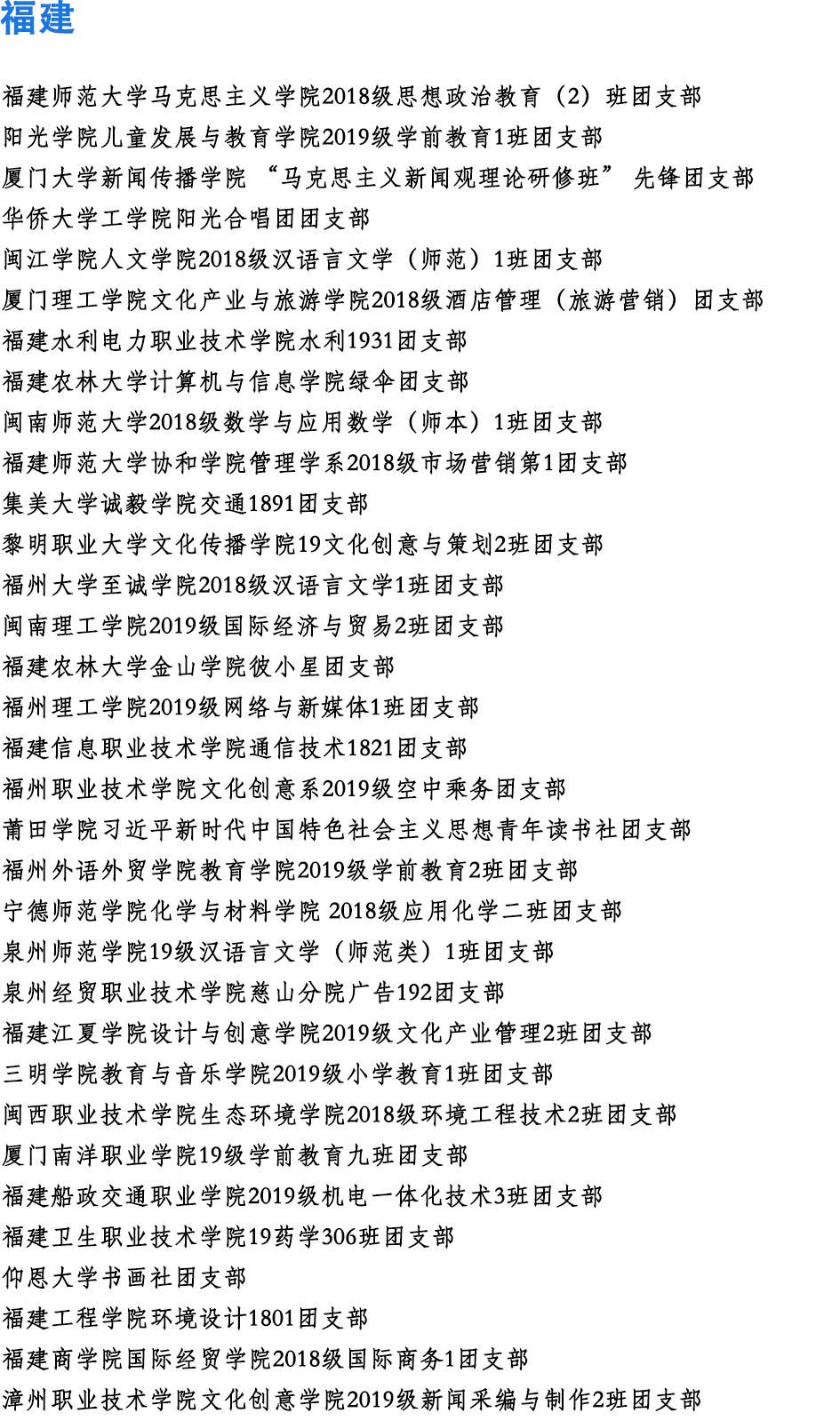 活动期间,1600所高校通过新媒体方式集中展示了在“党史学习教育”等方面的团支部建设成果和典型经验,1100万人次参与网络点赞。经校级申报、省级初评、展示点赞、全国终审、名单公示等环节,遴选产生了1000个高校活力团支部,名单如下。