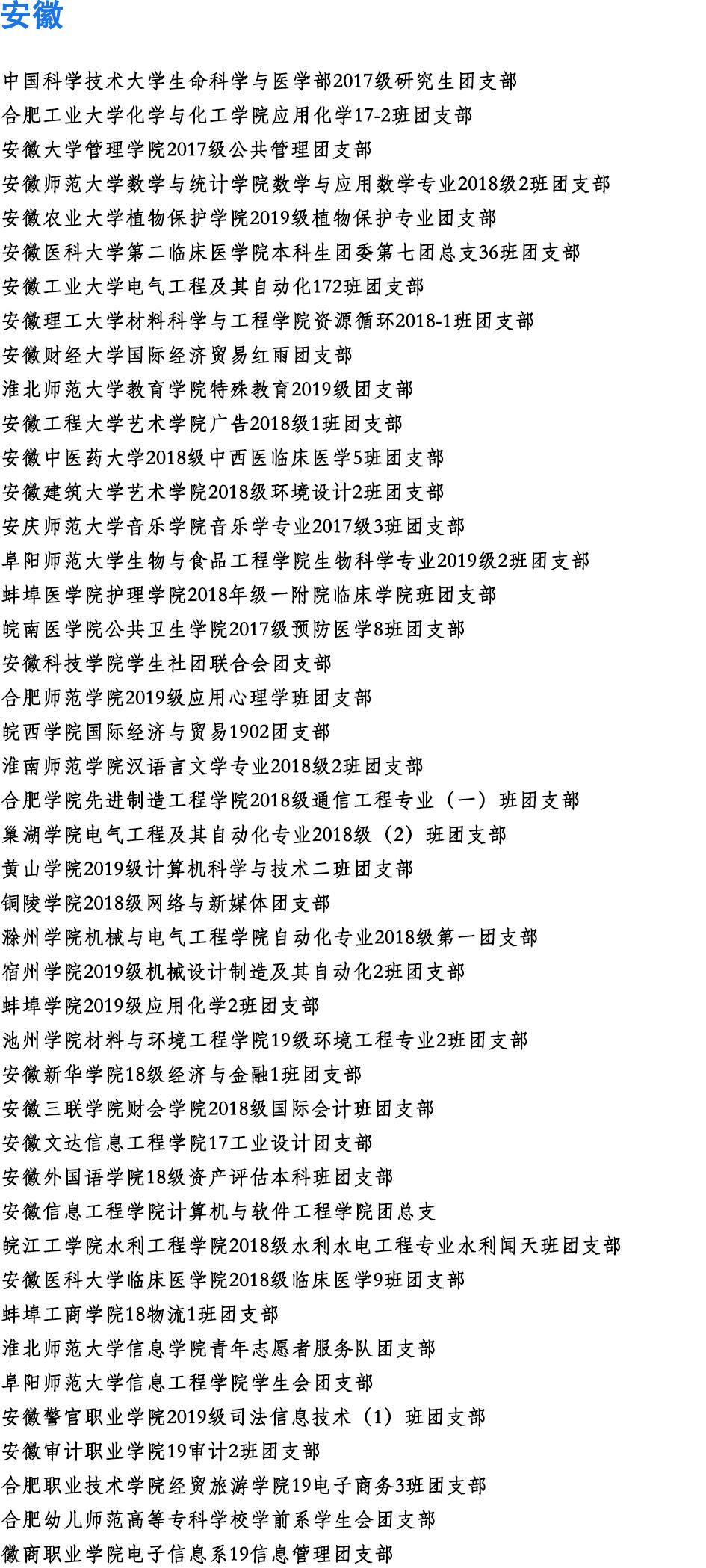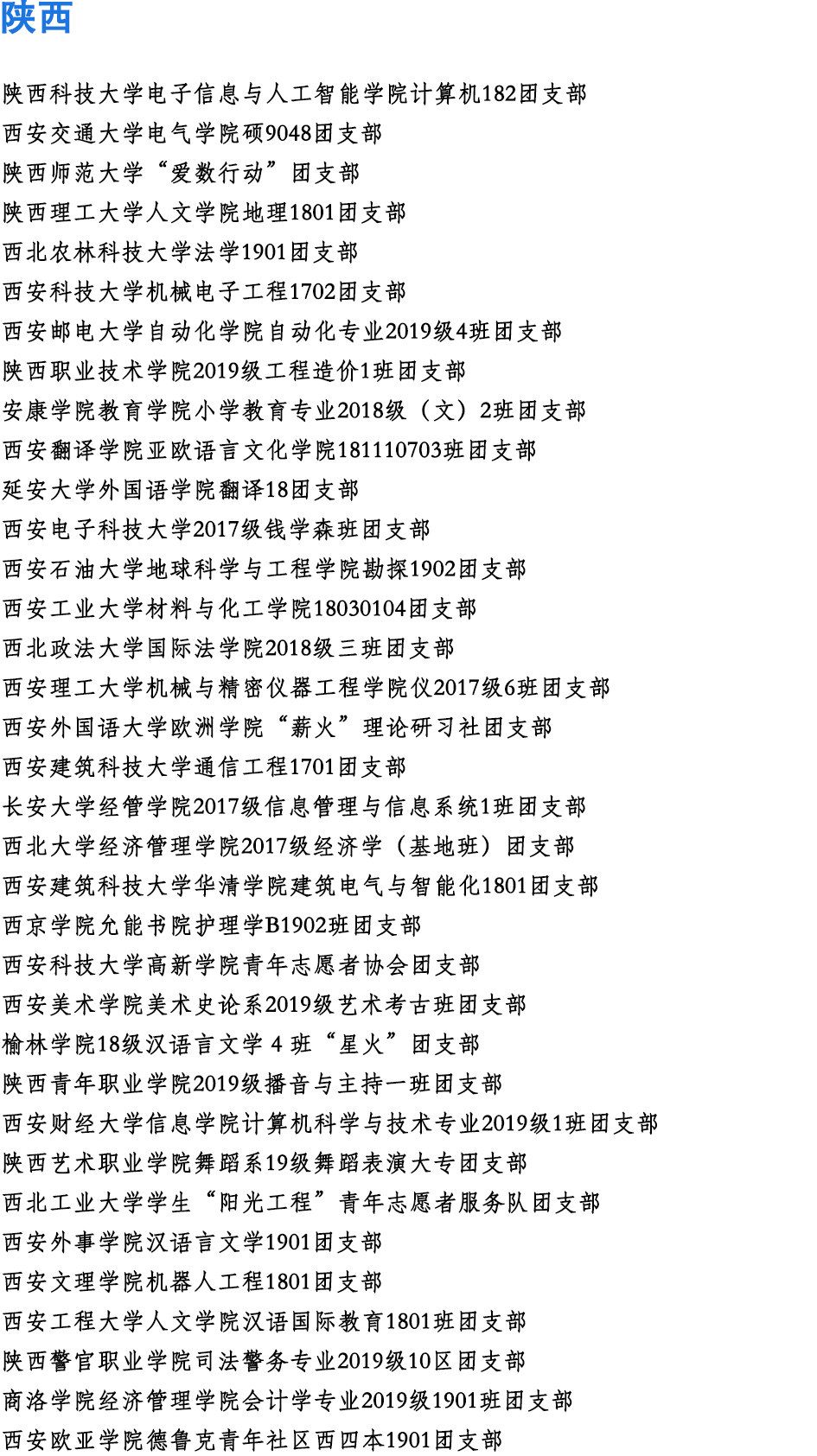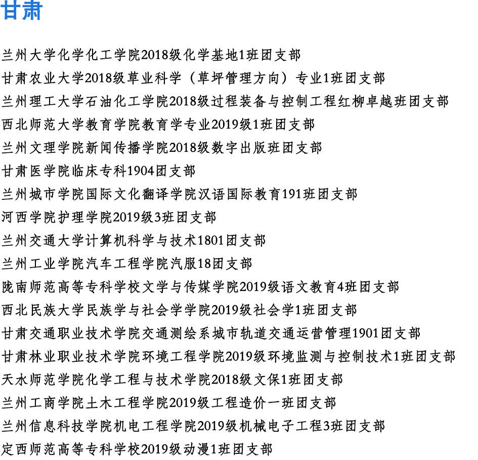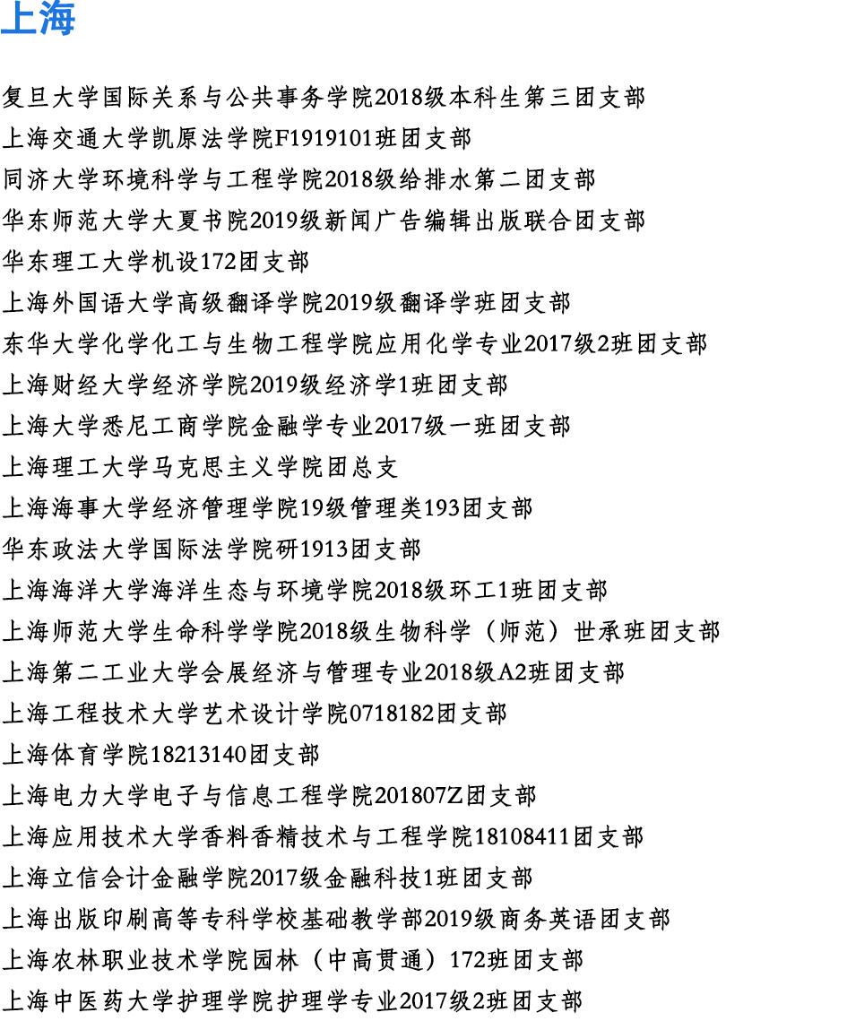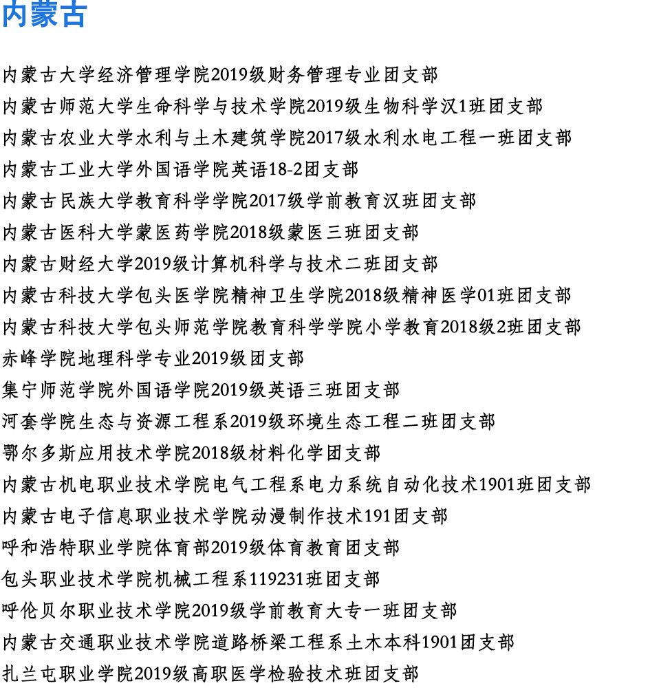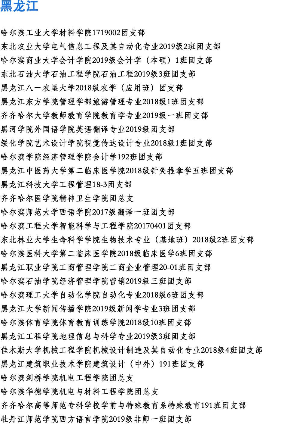 活动期间,1600所高校通过新媒体方式集中展示了在“党史学习教育”等方面的团支部建设成果和典型经验,1100万人次参与网络点赞。经校级申报、省级初评、展示点赞、全国终审、名单公示等环节,遴选产生了1000个高校活力团支部,名单如下。