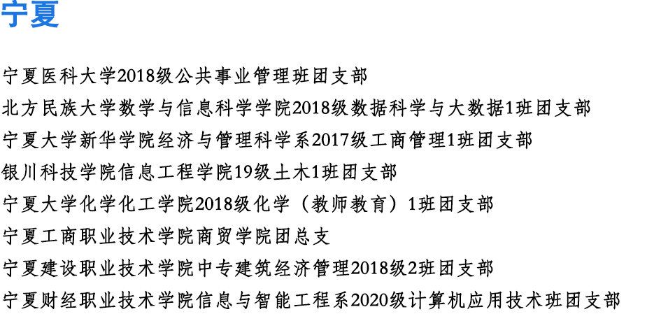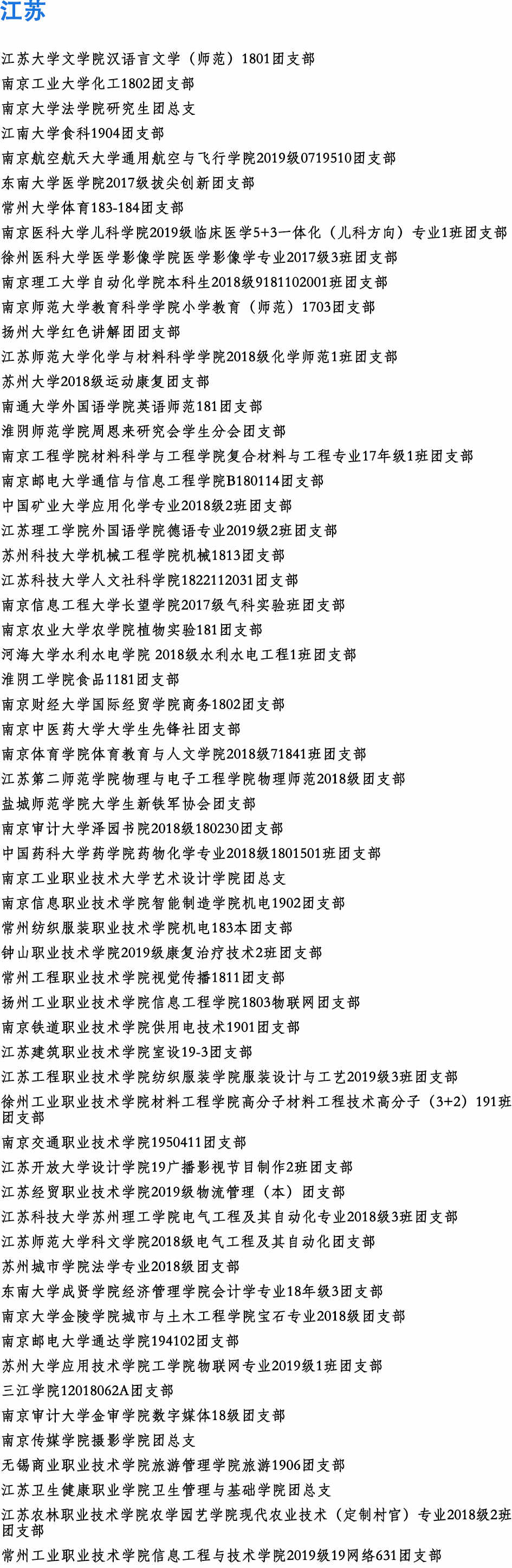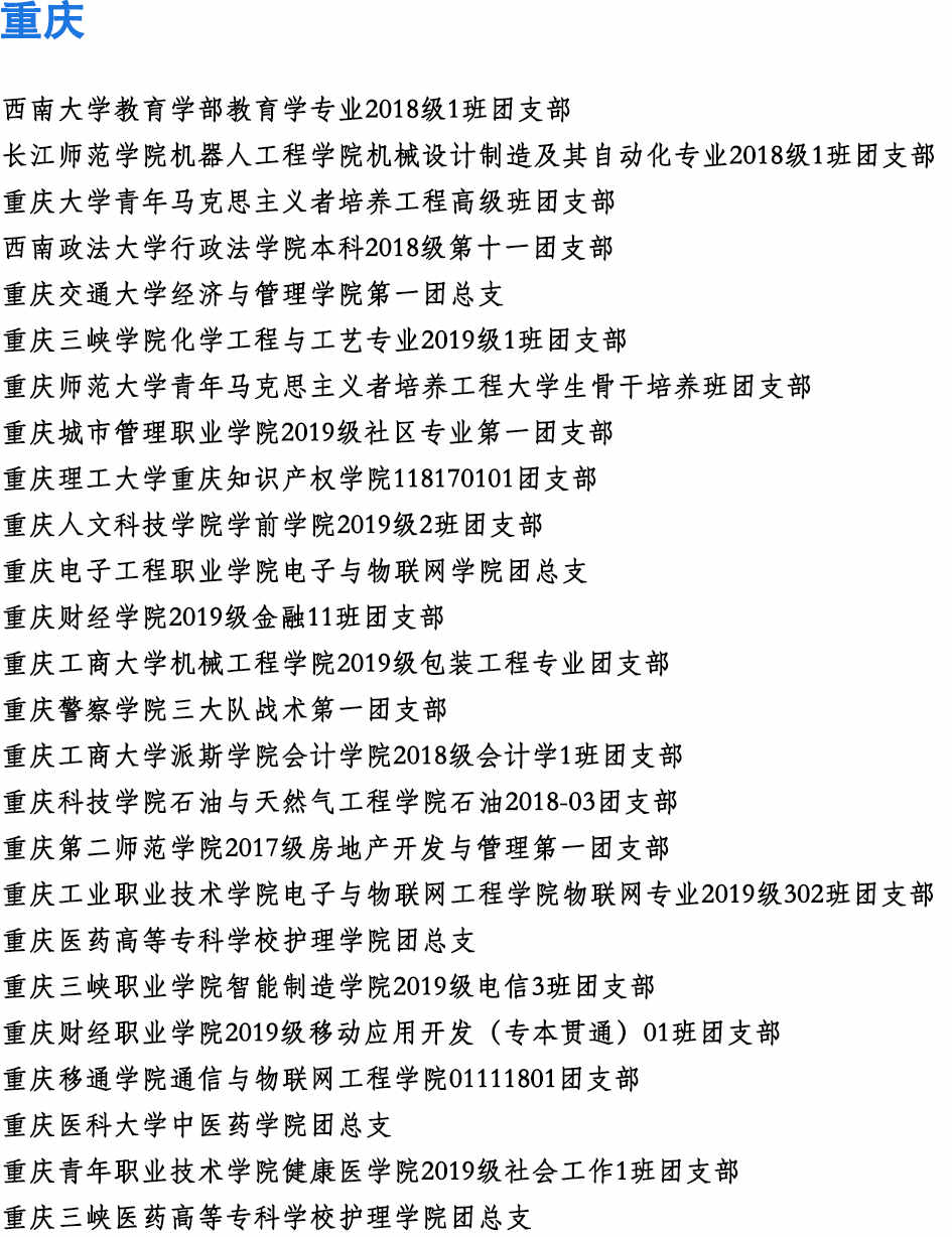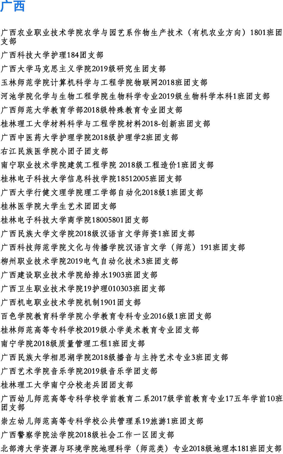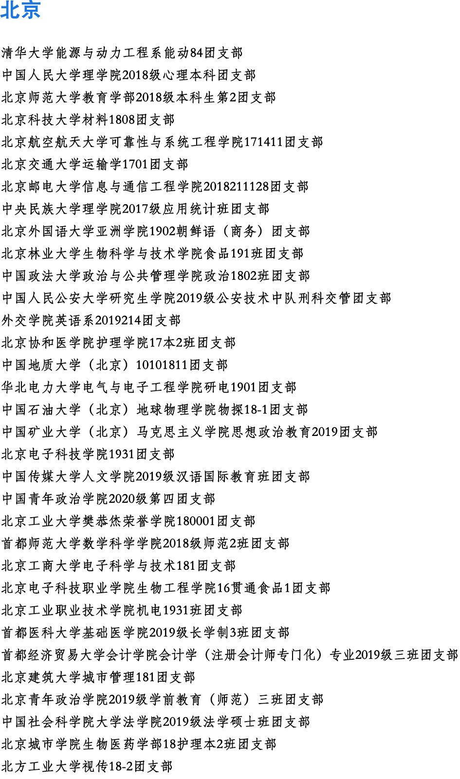 活动期间,1600所高校通过新媒体方式集中展示了在“党史学习教育”等方面的团支部建设成果和典型经验,1100万人次参与网络点赞。经校级申报、省级初评、展示点赞、全国终审、名单公示等环节,遴选产生了1000个高校活力团支部,名单如下。