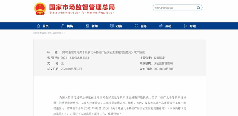 为进一步提升芯片、模块、天线、板卡等北斗基础产品质量,保障北斗卫星导航系统在各领域各行业的广泛应用,近日,市场监管总局印发《关于开展北斗基础产品认证工作的实施意见》(以下简称《实施意见》),通过在北斗行业建立实施质量认证制度,营造有利于北斗基础产品发展的良好环境。