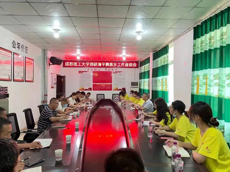 8月20日上午,实践团来到第二站--清平彝族乡,与清平乡领导以及各村党支部书记一起开展了主题为“成都理工大学调研清平彝族乡工作”的座谈会。座谈会上,各村党支部书记分别就本村交通、地理位置、产业分布等方面进行了交流分享。