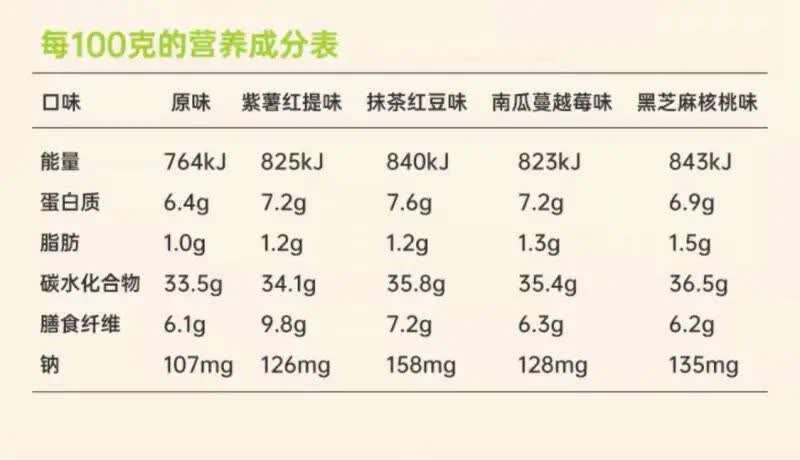 原味面包的包装上明明白白写着蛋白质6.4克/100克、脂肪1.0克/100克、碳水化合物33.5克/100克、膳食纤维6.1克/100克、钠107毫克/100克,总和为47.107克/100克,即占比约为47.1%,不到总量一半。