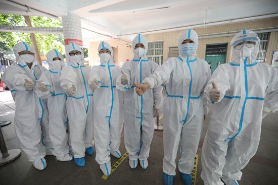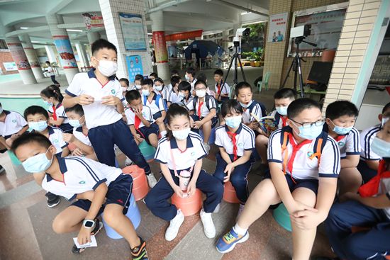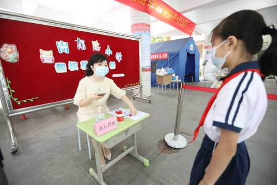2021年8月29日,在广州昌岗东路小学,23名学生家长变身义工,其中8名是一线医务工作者,他们来到学校,协助完成学生的核酸检测工作。有家长志愿者负责信息录入,引导学生登记、采样,有家长就是一线的医务工作者,身穿防护服认真为学生进行核酸检测。