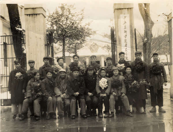 1950年11月中央美术学院华东分院参军学生与送行领导合影,前左2周沧米,左3莫朴,左4倪贻德,左5刘开渠,后左1王德惠,左7朱豹卿