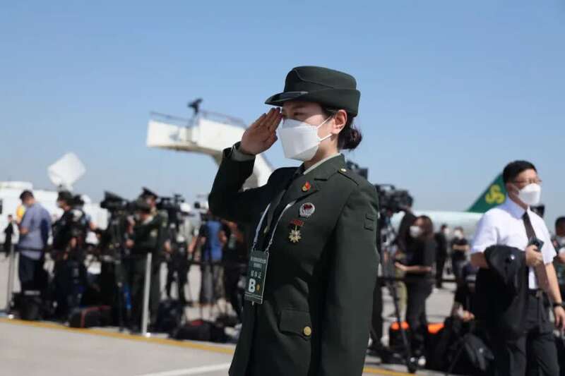 记者区内,一位身着军装的女生格外显眼。这位女生叫陈怡,曾经是一名军人,如今是一位退役军人工作者,今天这场迎回交接仪式,对她来说意义颇深。