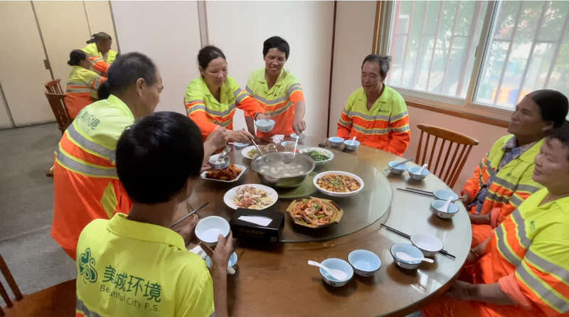因为从事体力劳动,工人们在就餐时,往往饭打的比较多,吃的也比较快。来自四川凉山彝族自治州的环卫工人布火姐机莫告诉中青报·中青网记者,工人里面,有些是夫妻两人一起住在环卫所提供的宿舍里,有些跟儿子媳妇一家人租房住。