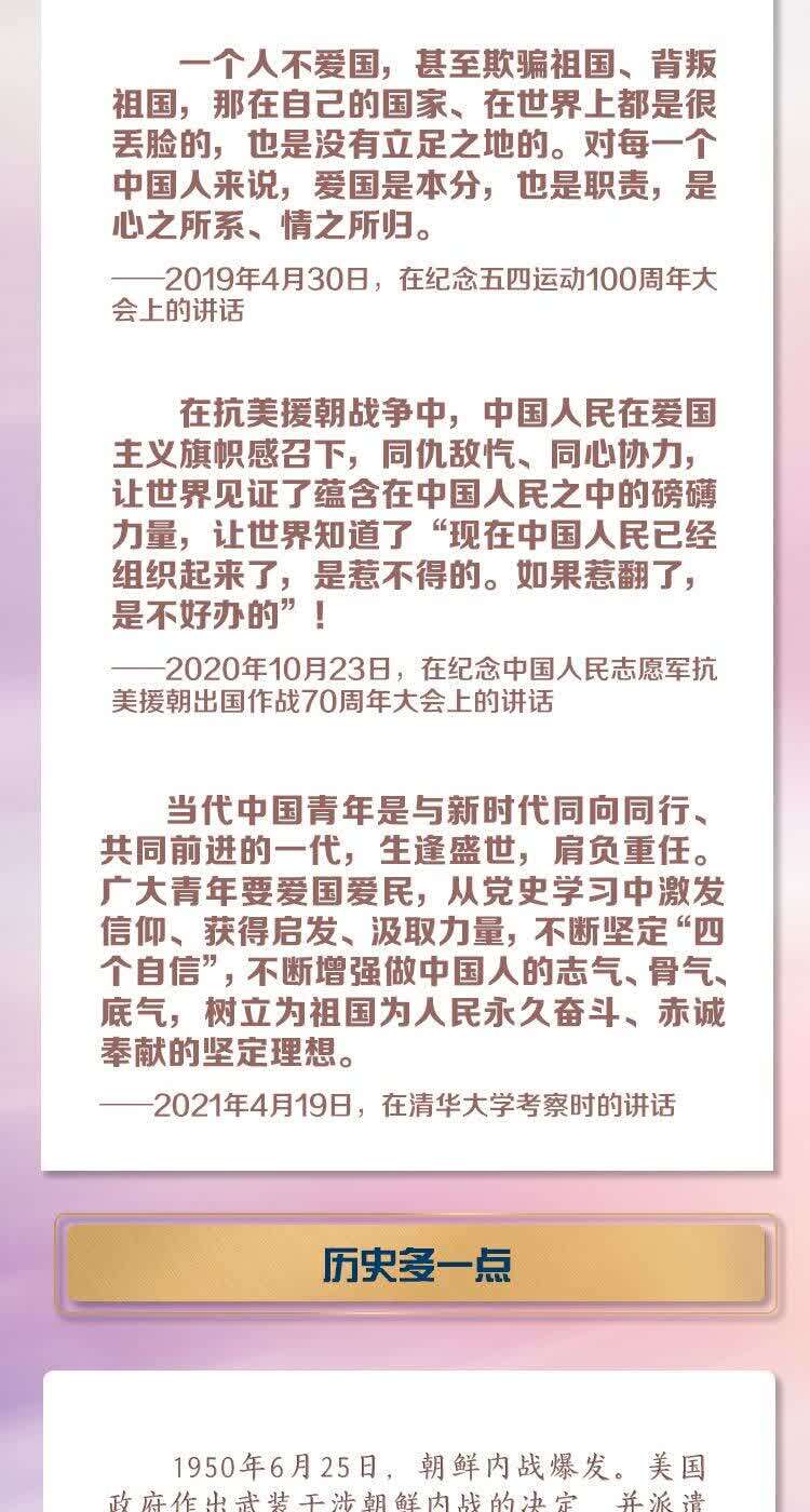 在这个庄重的日子,央视网《联播+》特梳理习近平总书记在不同场合对爱国主义思想真谛的深刻阐释,与您一起缅怀先烈,弘扬爱国主义精神,为实现中华民族伟大复兴矢志奋斗。