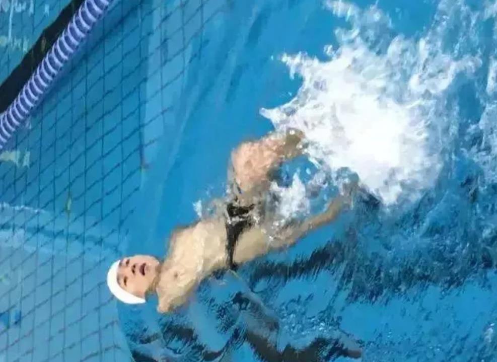 出发时他只能靠紧紧咬着毛巾保持姿势