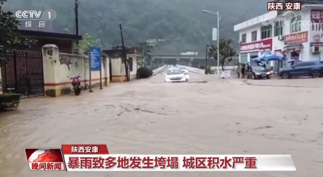 陕西安康:暴雨致多地发生垮塌 城区积水严重