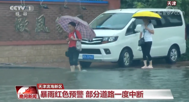 天津滨海新区:暴雨红色预警 部分道路一度中断