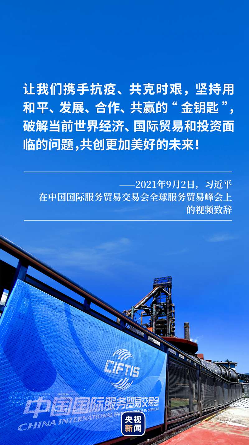 9月2日,在2021年中国国际服务贸易交易会全球服务贸易峰会上发表的视频致辞中,习近平主席给出了解题的“金钥匙”——和平、发展、合作、共赢。