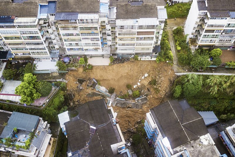 2021年9月5日,四川南充阆中市,保宁街道办事处观音路社区发生堡坎滑坡。