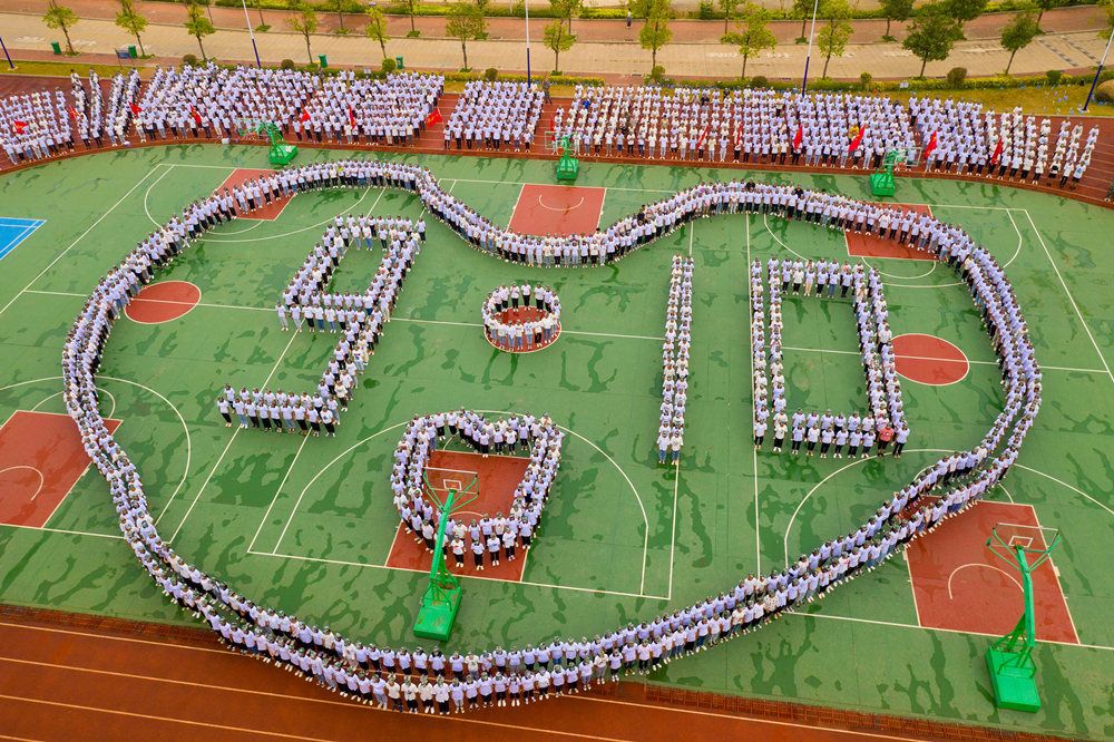 2020年9月7日,广西梧州商贸学校结合新生军训汇操,2000多名同学们在操场上摆成巨型“9.10”字样和心型图案方阵,以这种特殊方式致敬教师节,给老师们送去节日的祝福和感恩之情。