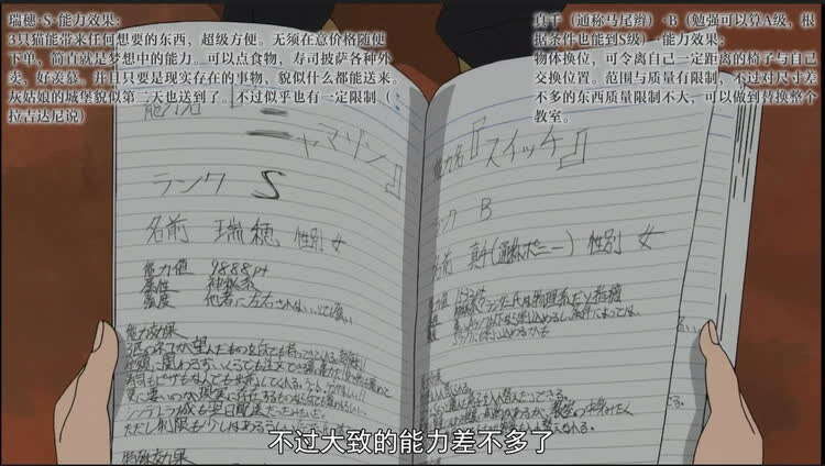 于是,就有了各种奇幻的设定。首先,这个世界的一切都会自动复原。所以,食物取之不尽用之不竭,损坏的器物也会自动还原,就连受了伤也会自动康复。其次,不幸漂流到这个异次元的学生里,不少人拥有了“超能力”。比如动漫里的小山瑞穗经常带着祖母珍爱的三只猫“虎”、“原”、“樱”。她的超能力就是想要的东西都会由猫送来的“喵马逊”(显然是影射“亚马逊”网站)……