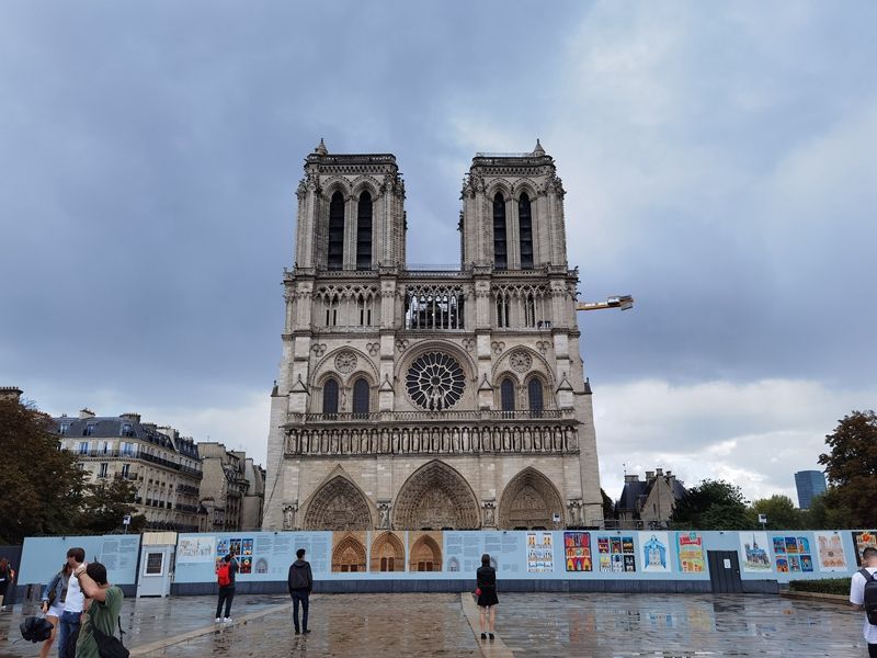 当地时间2021年9月10日,法国巴黎,修缮近两年的巴黎圣母院近日逐渐解开了其神秘面纱,向公众展示部分修复后的建筑结构和外层装饰,引诸多游客驻足观看。