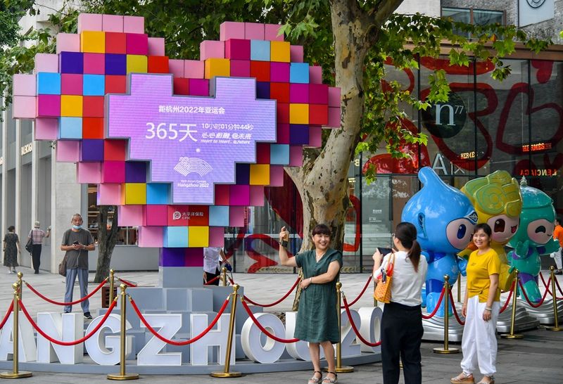 2021年9月10日,距离2022年杭州亚运会开幕还有365天,竖立在湖滨步行街的杭州亚运会倒计时牌成了市民和游客的热门打卡地。