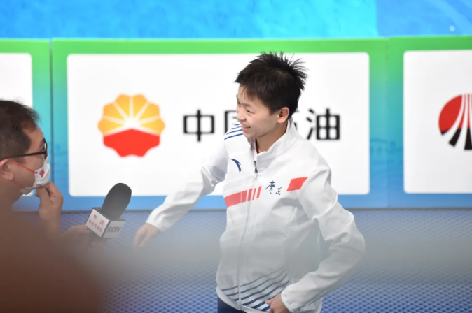 全红婵赛后接受采访 (中青报·中青网记者慈鑫摄)