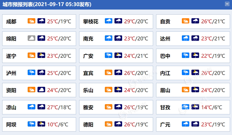 △四川各城市天气预报