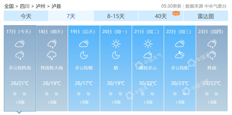 △泸县未来7日天气