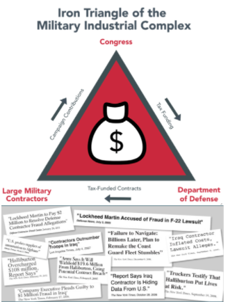 这一利益集团利用“旋转门”机制操控联邦政府政策走向。首先就是军工企业通过培养专业人才进入美国政府,以各种理由游说政府增加军费开支,以便通过发动战争和在全球推销军火来拿到源源不断的防务订单。