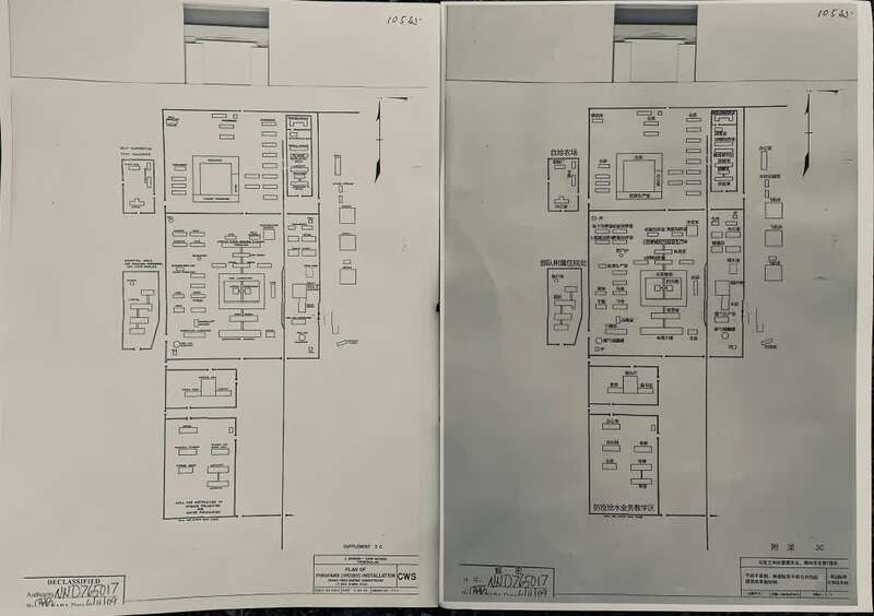 这份平面图是根据731部队首任部队长石井四郎向美军提供的草图绘制而成,系首次公布,并且右下角还有德特里克堡的字样。
