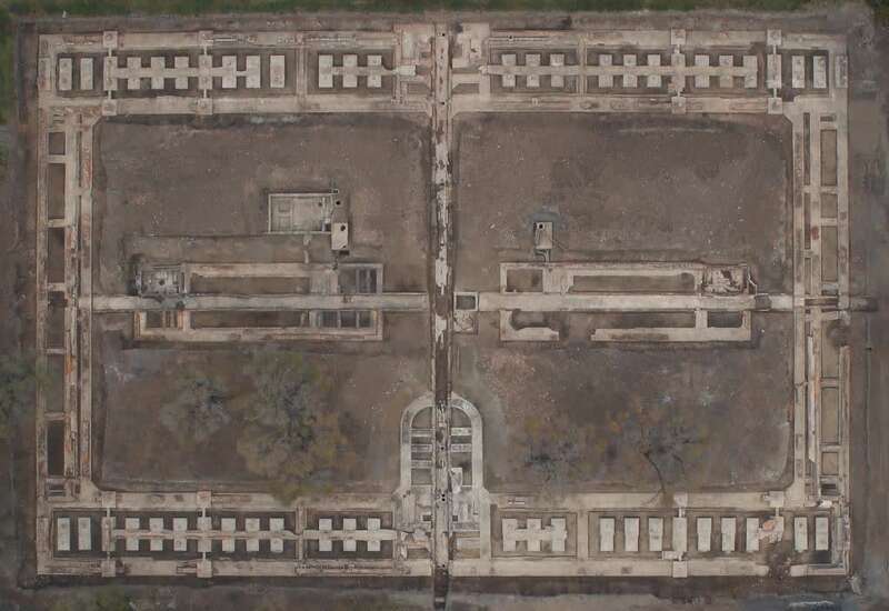 (图为侵华日军第七三一部队旧址中的四方楼遗址)