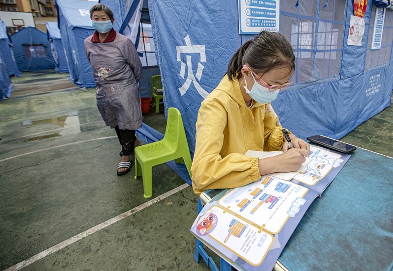 2021年9月19日,走进四川省泸州市泸县嘉明镇、福集镇和玉蟾山街道地震安置点,各安置点秩序井然,随处可见志愿者的身影,被安置人员情绪稳定,孩子们打乒乓球、看书、绘画、做健身操;中老年人跳舞、打牌。