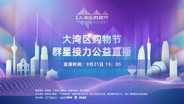 我们将于9月21日15:00, 为您全网直播首届“粤港澳大湾区购物节”群星接力公益直播,知名主持人、电影人、音乐人、主播将齐聚现场,全景呈现大湾区融合发展成果,讲述大湾区品牌故事,“种草”大湾区好物。锁定直播,解锁更多湾区好物,不见不散!