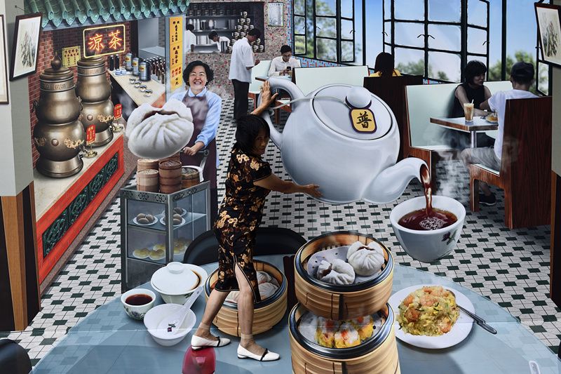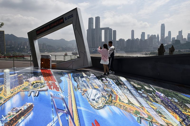 2021年9月19日,重庆南岸区弹子石老街的裸眼3D画吸引了众多游人前来体验拍照。