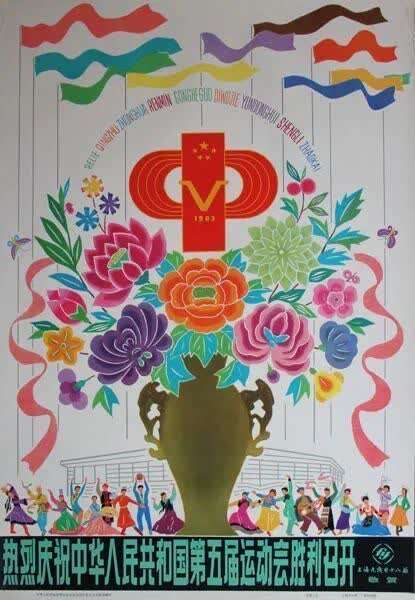 前四届全运会都是在北京举办的,1983年第五届全运会首次来到上海举办,全运会首次设立精神文明奖,翁逸之、哈琼文等设计名家参与了海报设计。