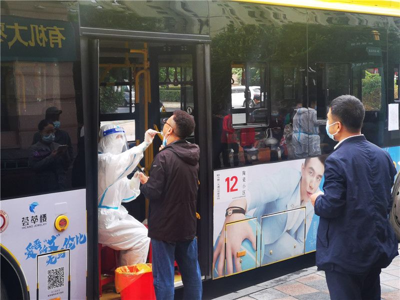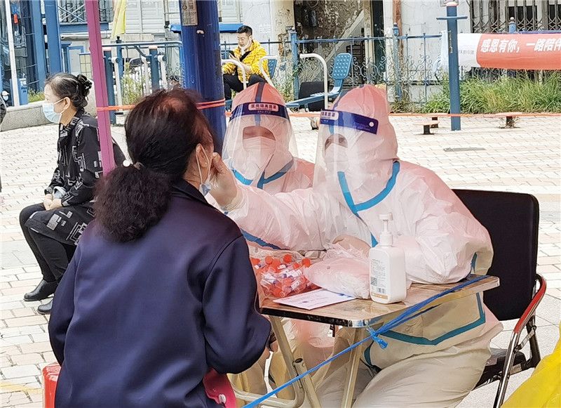 2021年9月22日,哈尔滨新区观江国际社区的居民在社区院内进行免费核酸检测。