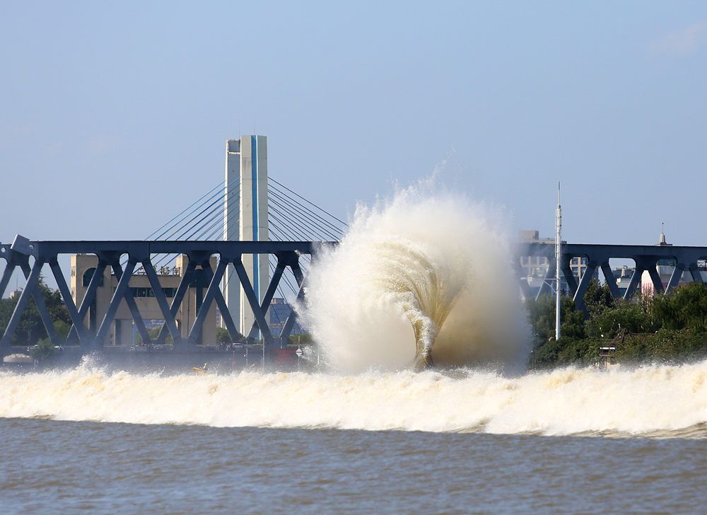 2021年9月21日,中秋节,杭州,钱塘江大潮迎来最佳观赏期,潮水波涛汹涌。