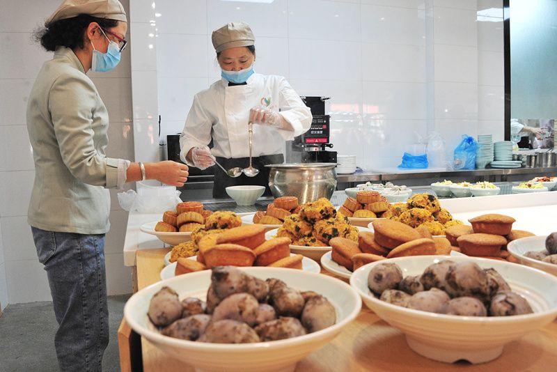2021年9月21日,上海,为方便广大社区老年人就餐,普陀区曹杨五村的桐柏片区“幸福饭堂”近日开张迎客,这是街道开办的第7家社区食堂(助餐点)。从早餐“四大金刚”到“上海炸猪排”“上海炒面”“老上海双档”等,老年人可以在这里解决一日三餐,午后和三五好友在这聊天喝茶,接上孙辈后,还能在亲子乐园享受老少同乐的乐趣。