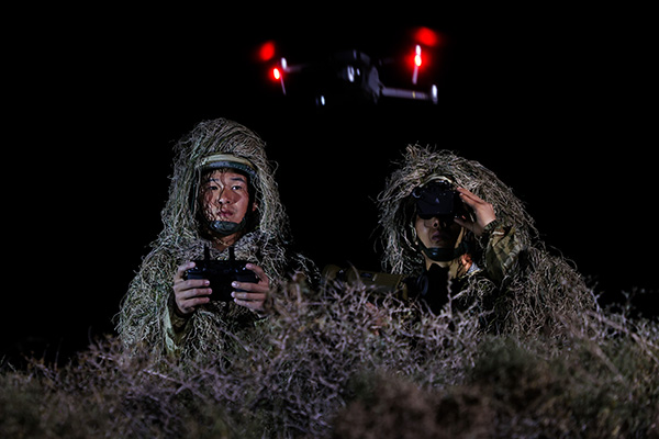 ↑官兵通过无人机展开侦察。胡永辉 摄