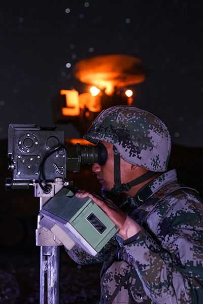 ↑官兵进行便携式导弹夜间瞄准训练。胡永辉 摄