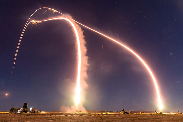 ↑导弹夜间双发齐射。胡永辉 摄