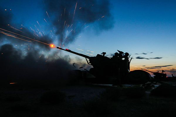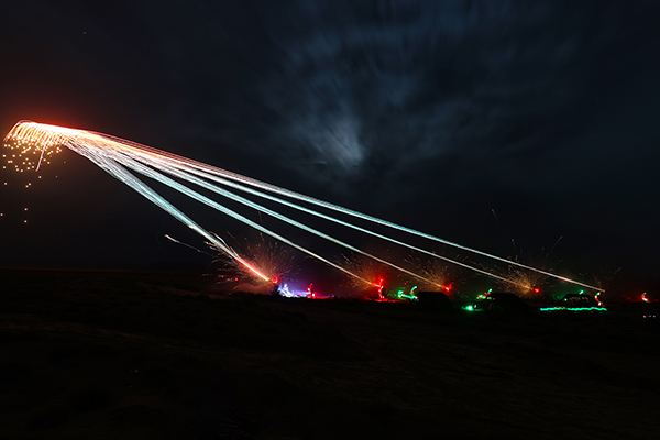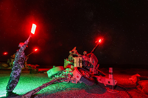 ↑高炮夜间射击。胡永辉 摄