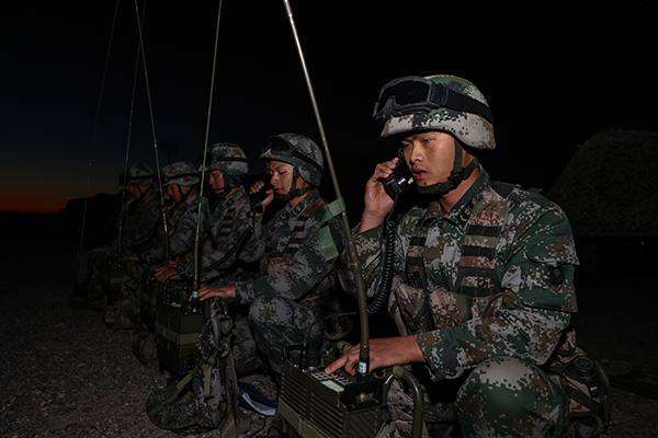 官兵们在星光下展开夜间机动,到达预定地域后快速隐蔽伪装、构建指挥通信网和立体防空火力网。战车列阵,雷达飞旋,官兵趁着夜暗练兵、顶着冷风作业,共采集数百条新的作战数据。