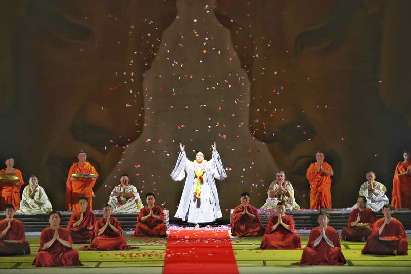 据悉,此剧是世界首部大型民族器乐剧,文化和旅游部、财政部资助的重点立项创排剧目,以玄奘西行取经的历史故事为题材,以中央民族乐团民族管弦乐队为表演主体。