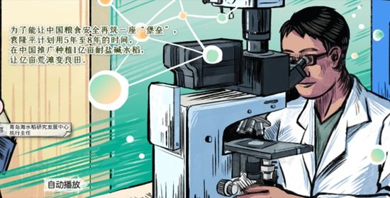 画面开篇便将网友带入新疆喀什地区岳普湖县,描绘出今年300亩耐盐碱水稻在这片重度盐碱地上茁壮生长的壮阔画面。而让这里的土壤得到改良,让这里的百姓收获粮食,都离不开袁隆平。为了让中国粮食安全再筑一座“堡垒”,袁隆平计划用5年到8年的时间,在中国推广种植1亿亩耐盐碱水稻,让亿亩荒滩变良田。长卷生动刻画了袁隆平从2016年牵头成立“青岛海水稻研发中心”,到带领团队开展杂交育种研究工作并迎来耐盐碱水稻品种测产成功的全过程。