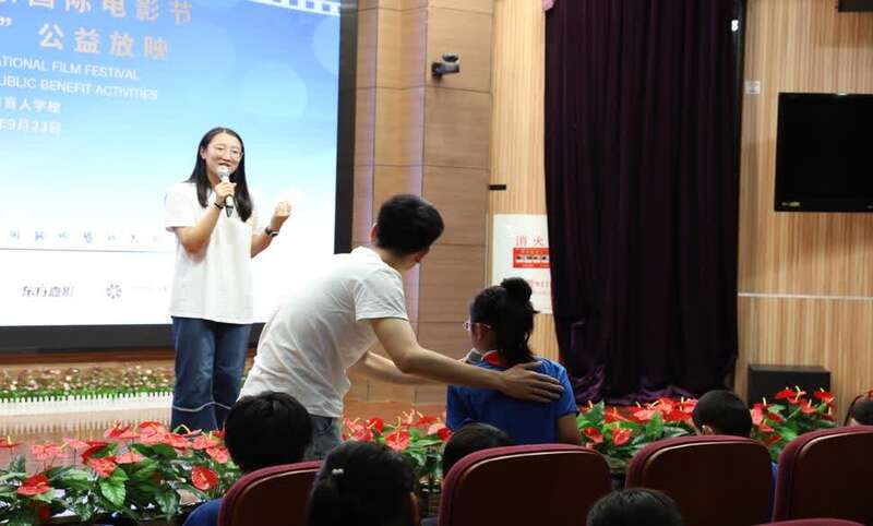 在电影放映前,“光明影院”志愿者以北京国际电影节为主题,与盲校学生展开互动,通过讲述一个个小故事,回顾了北影节的发展历程。活动中,盲校学生进一步了解了电影知识,加深了对北京国际电影节的认识。