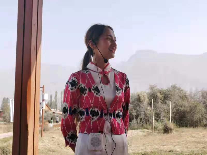 阿米娜是通过自学考试,毕业于新疆师范大学的应届本科生,今年刚回到家乡阿克苏乌什县的国家4A级景区沙棘湿地公园当上了解说员。