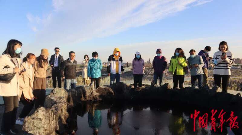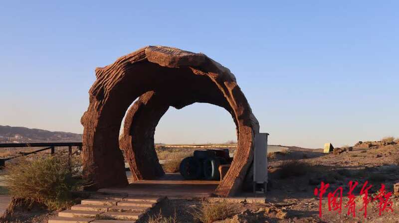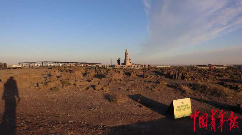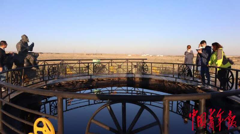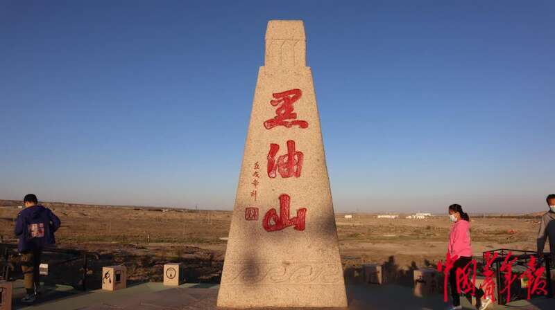 在国家4A级景区——克拉玛依黑油山,走过木头步道和油泥地带,风景尽收眼底。这里也是当地青少年红色研学、时间教育地点之一。“克拉玛依”在维吾尔族语中是“黑油”的意思。1955年10月29日,黑油山附近的一号井喷出工业油流,标志着克拉玛依油田的发现。山顶不远处,有一处老人雕像,印证着一段民族团结的故事。1912年,年轻的赛里木来到黑油山捞石油,卖给别人作车轴润滑剂。1954年,中国和苏联地质专家来黑油山勘探,70岁的赛里木为专家送水、送馕。