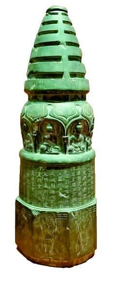 高善穆石造像塔是佛教传入中国后本土化的产物。这座北凉时期的石塔,大小如同一枚炮弹,采用的是印度佛塔样式,但其基座八面分别刻了“八卦”图像,表示八个方位。它开创了中国特有的八面佛塔先河,是最早的八卦实物资料之一。塔的顶部刻有北斗七星,表示塔寺坐北朝南的传统风水观念。