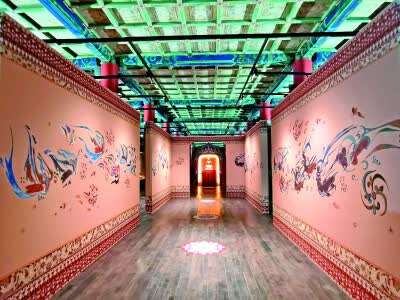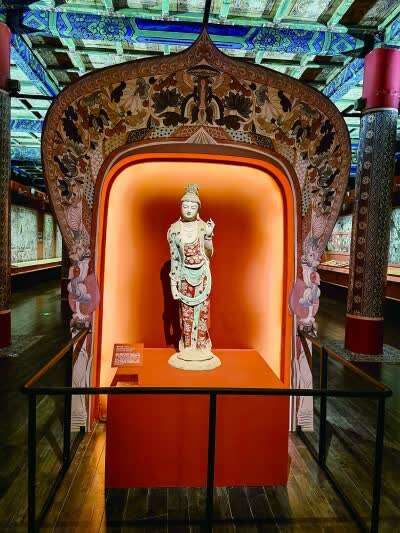 绘有飞天的夹墙,引领观众走进敦煌的意境。