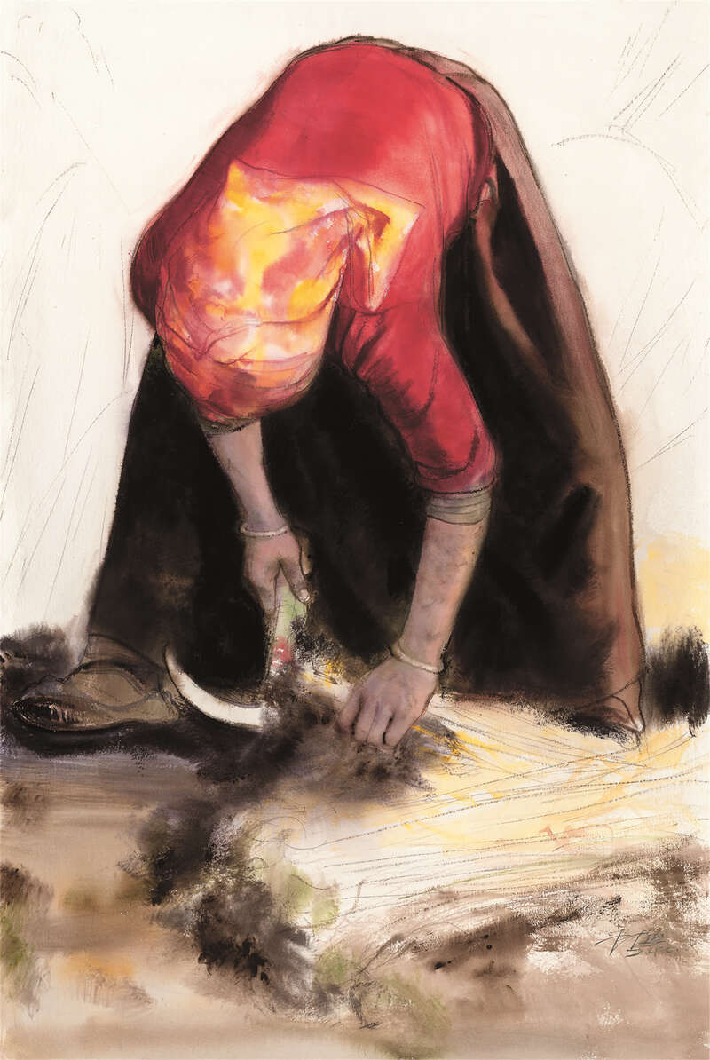 陈坚《收割》 2010年 纸本水彩 151.3×101.4cm 中国美术馆藏