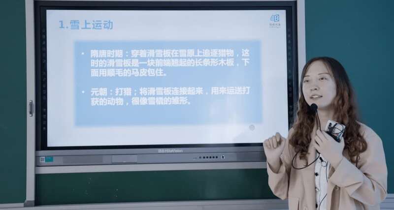 2022年,第24届冬奥会将在北京市和张家口市联合举办。捐建仪式当天,首都图书馆邀请两位“阅读北京”图书馆阅读课的分享人走进学校,给学生们带来了以冬奥、名著为主题的课程分享。其中,北京大学艺术史硕士张家瑄带领孩子们从文物中了解中国古代的人们是怎样赏雪的、有哪些冰雪运动。