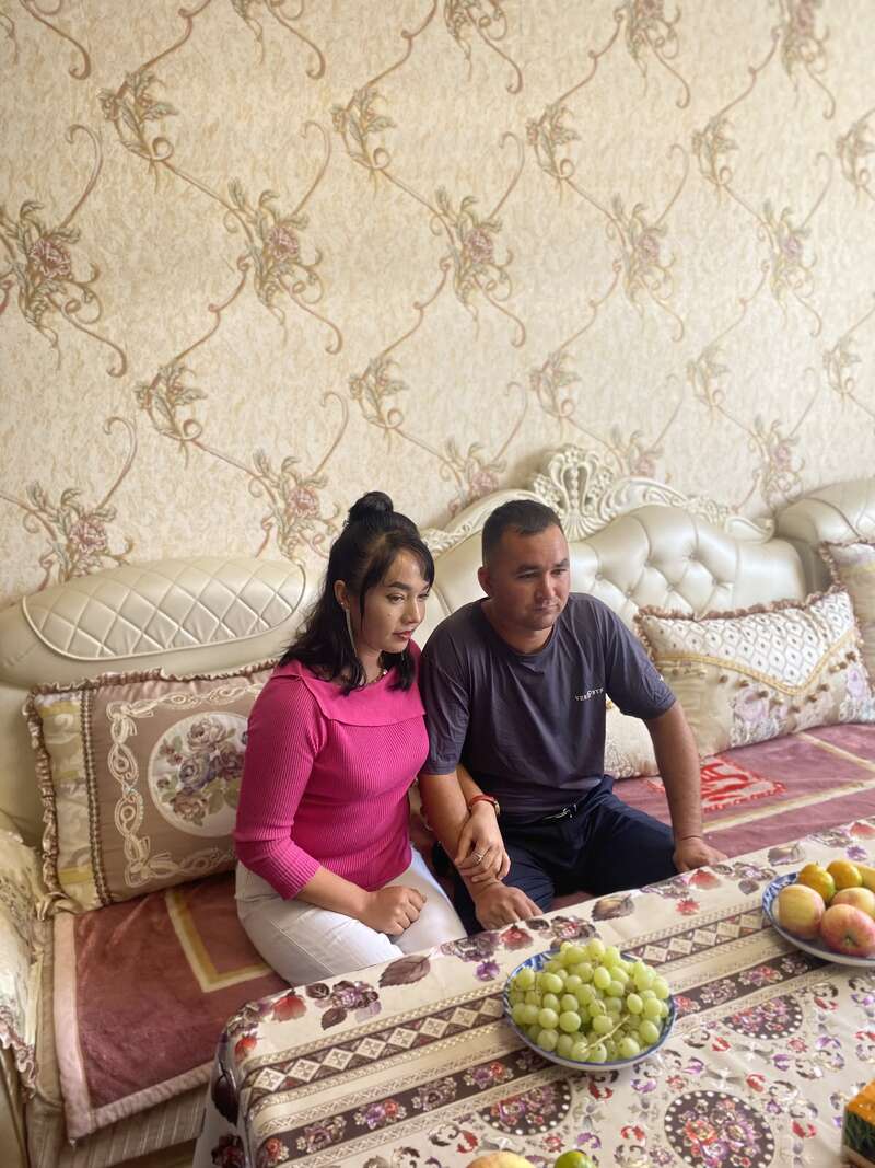 艾力·艾麦尔(右)和卜艾妮排·奥斯曼(左)在自家的客厅里。